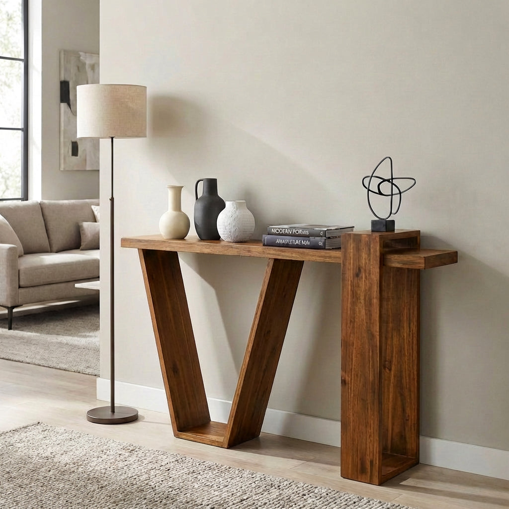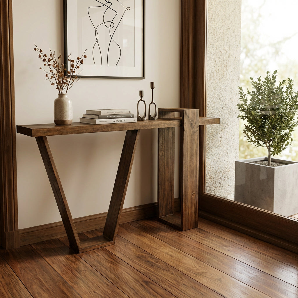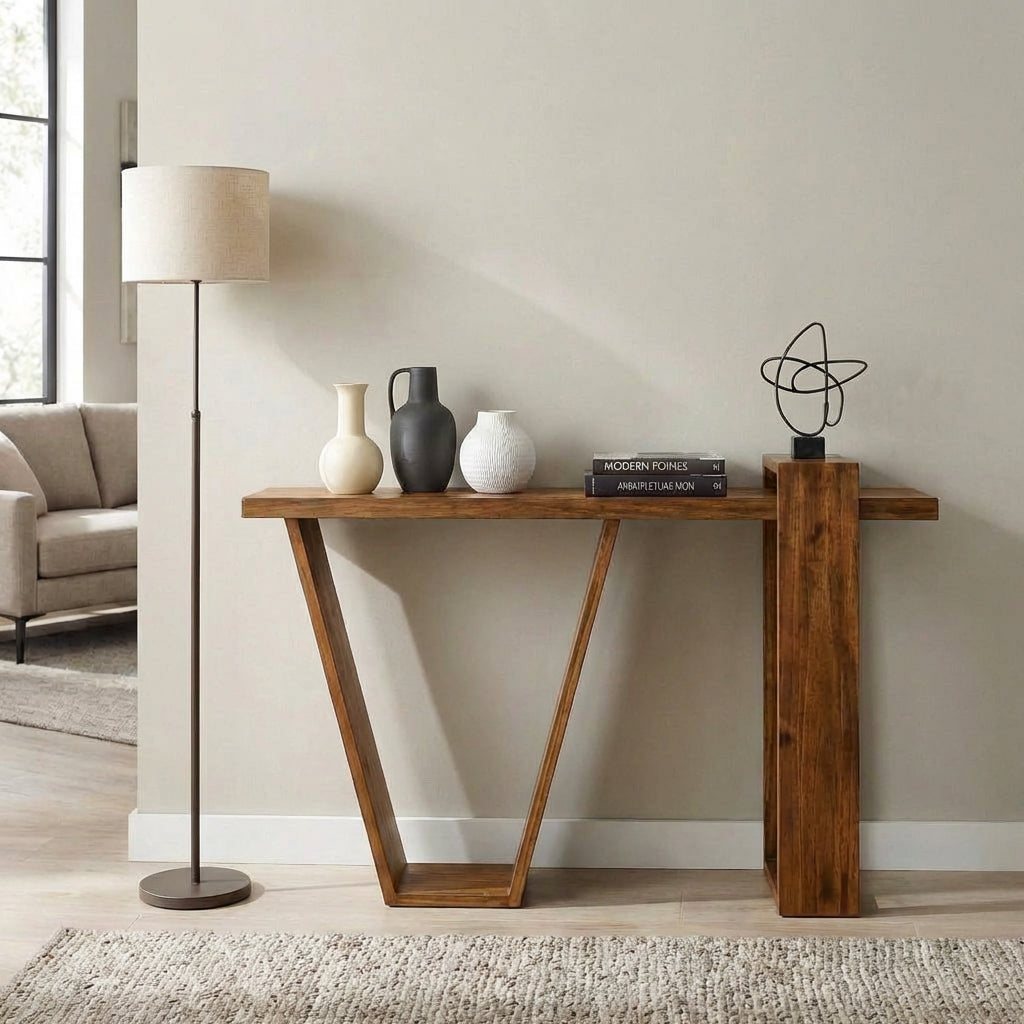 Perfecto para el living, recibidor o pasillos, este arrimo te permite organizar y exhibir tus objetos favoritos, creando un ambiente armonioso y contemporáneo.